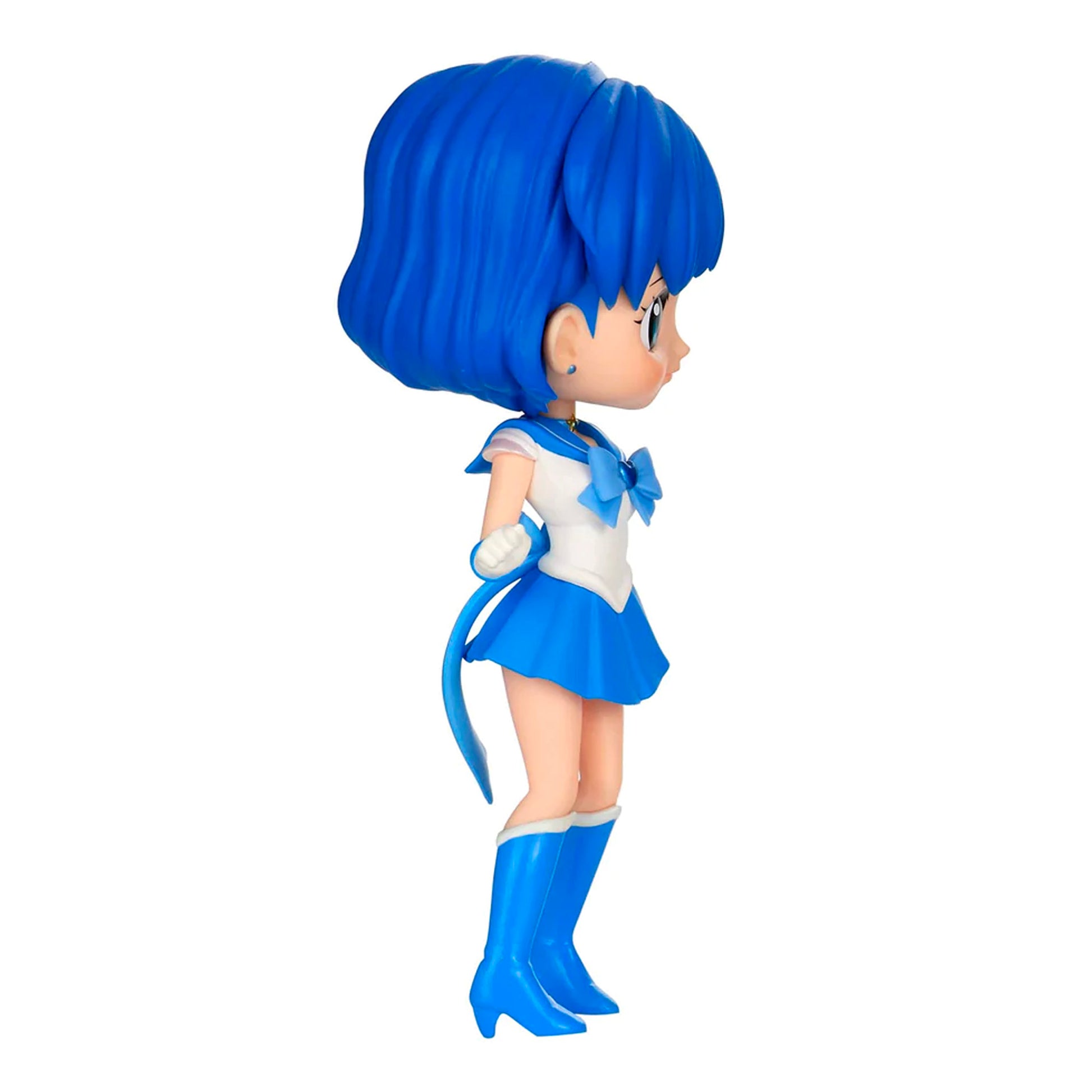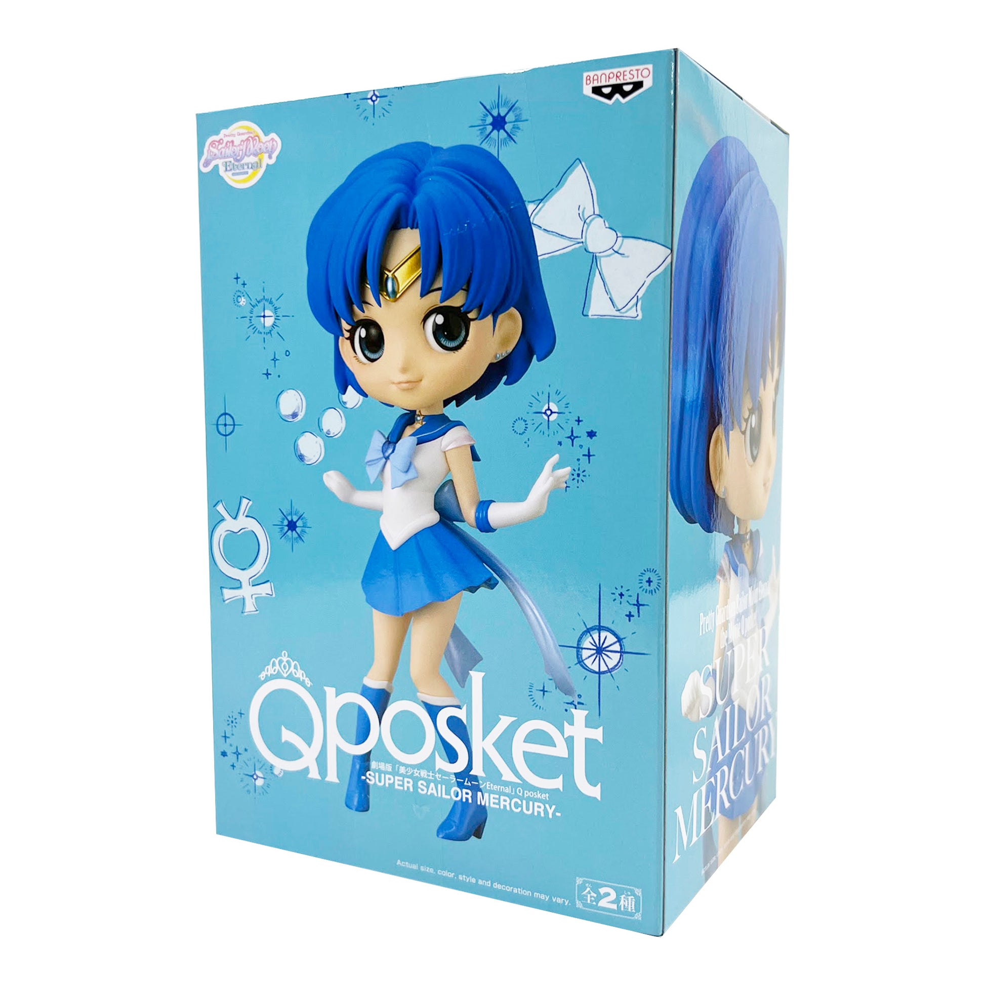 Based on her appearance in the anime film, Sailor Moon Eternal, Super Sailor Mercury joins the Q Posket figure line! This version features a normal color scheme and a matching white base.