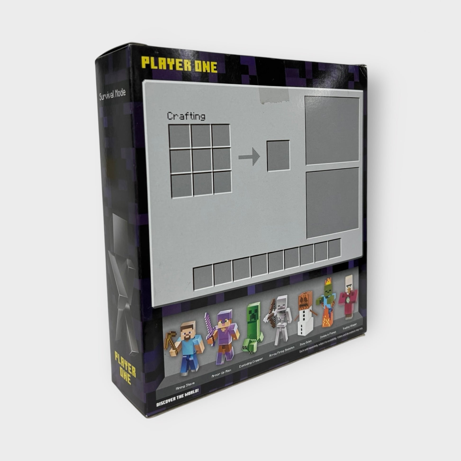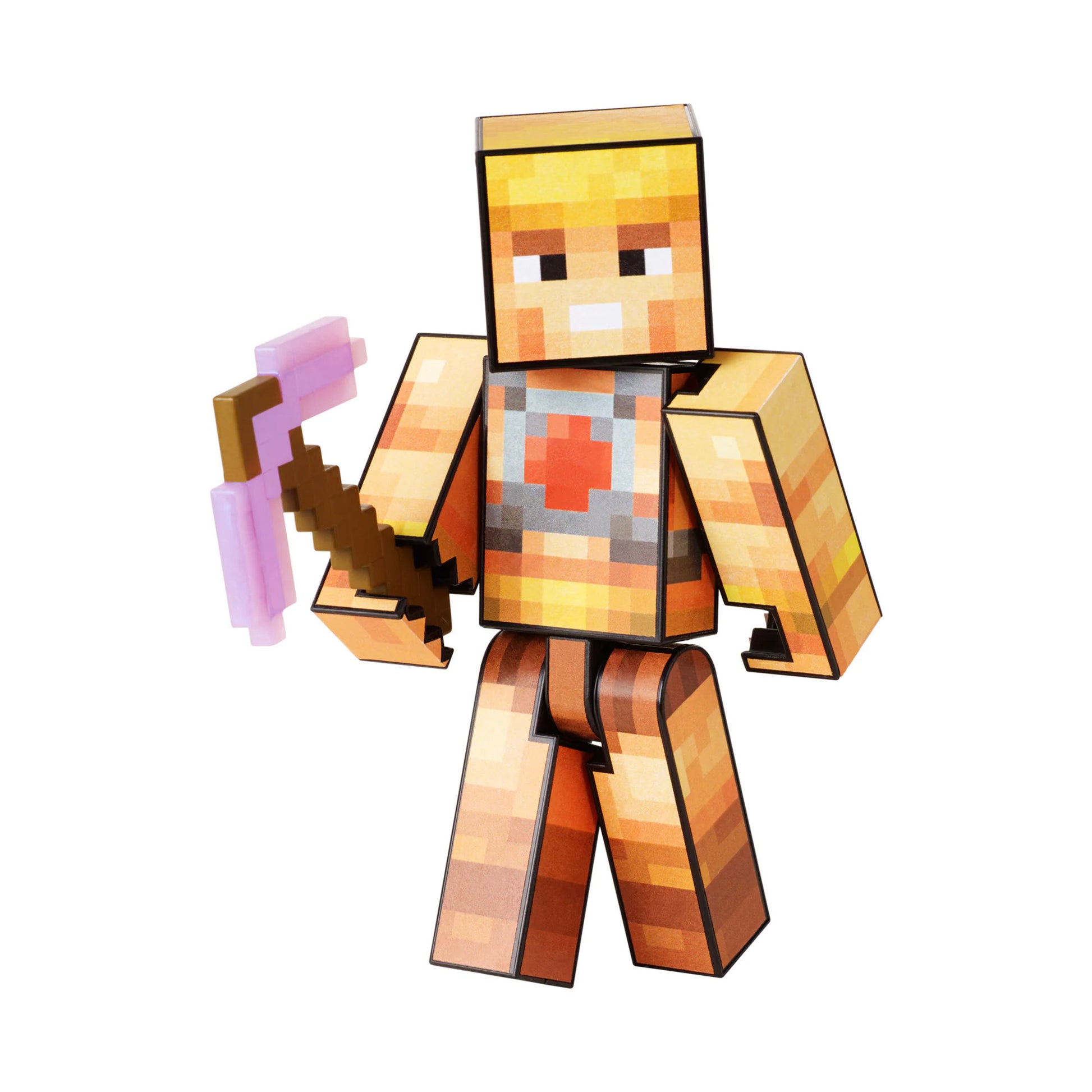 Mattel's Minecraft Survival Mode Player One set allows players to craft a unique look using their in-game skins. The toymaker will create and print a "custom label" based on a player's in-game skin, which players are able to apply any way they want. The Player One figure comes with an enchanted pick-axe. This is a San Diego Comic Con 2016 Exclusive