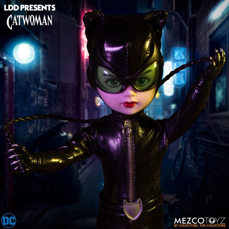 LDD Presents DC Universe: Catwoman stands ten inches tall and features five points of articulation. She comes packed in a window box, purrrfect for display.
