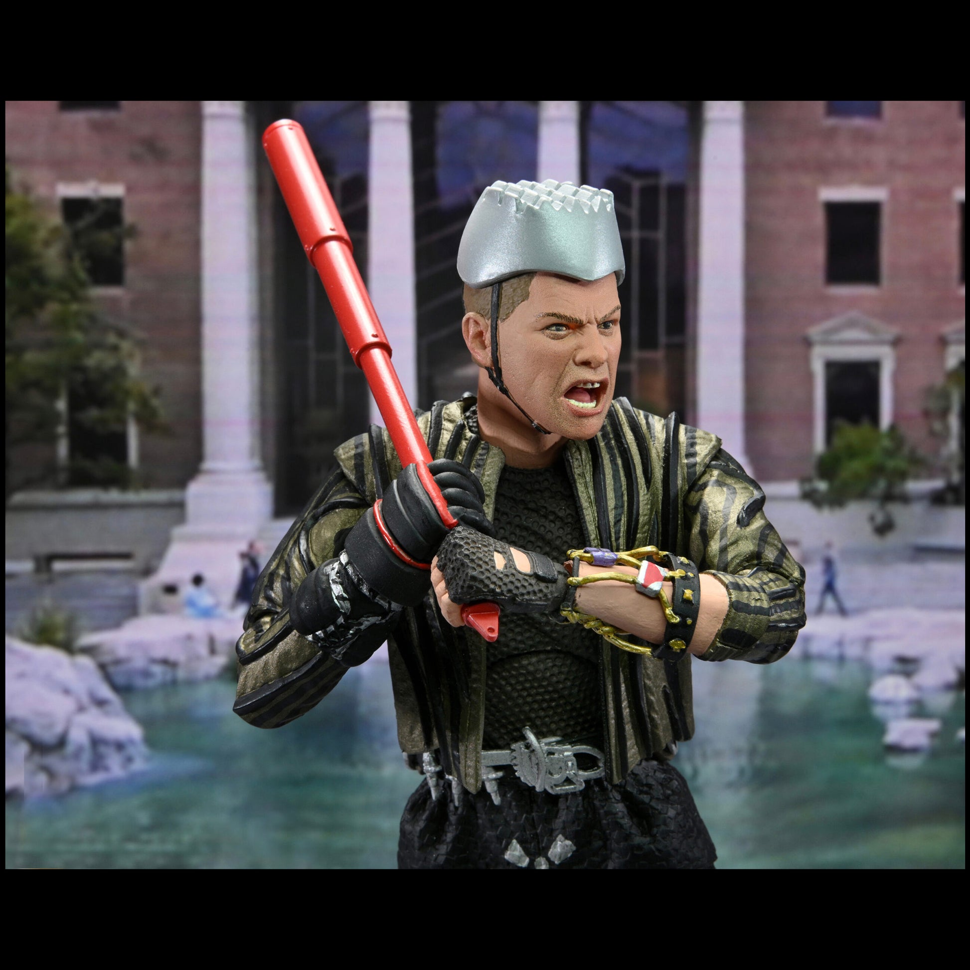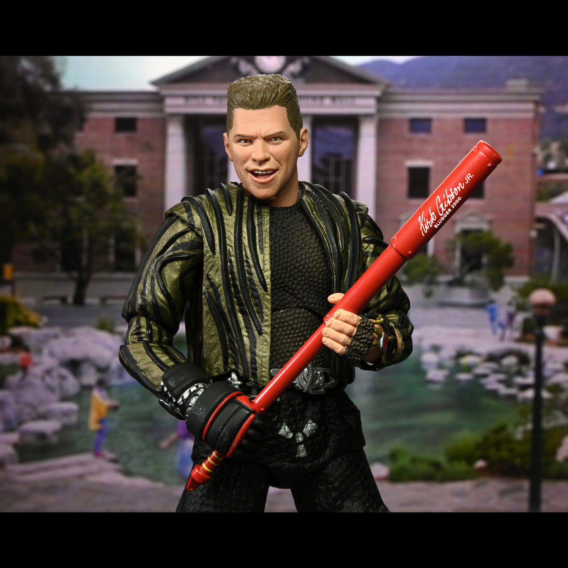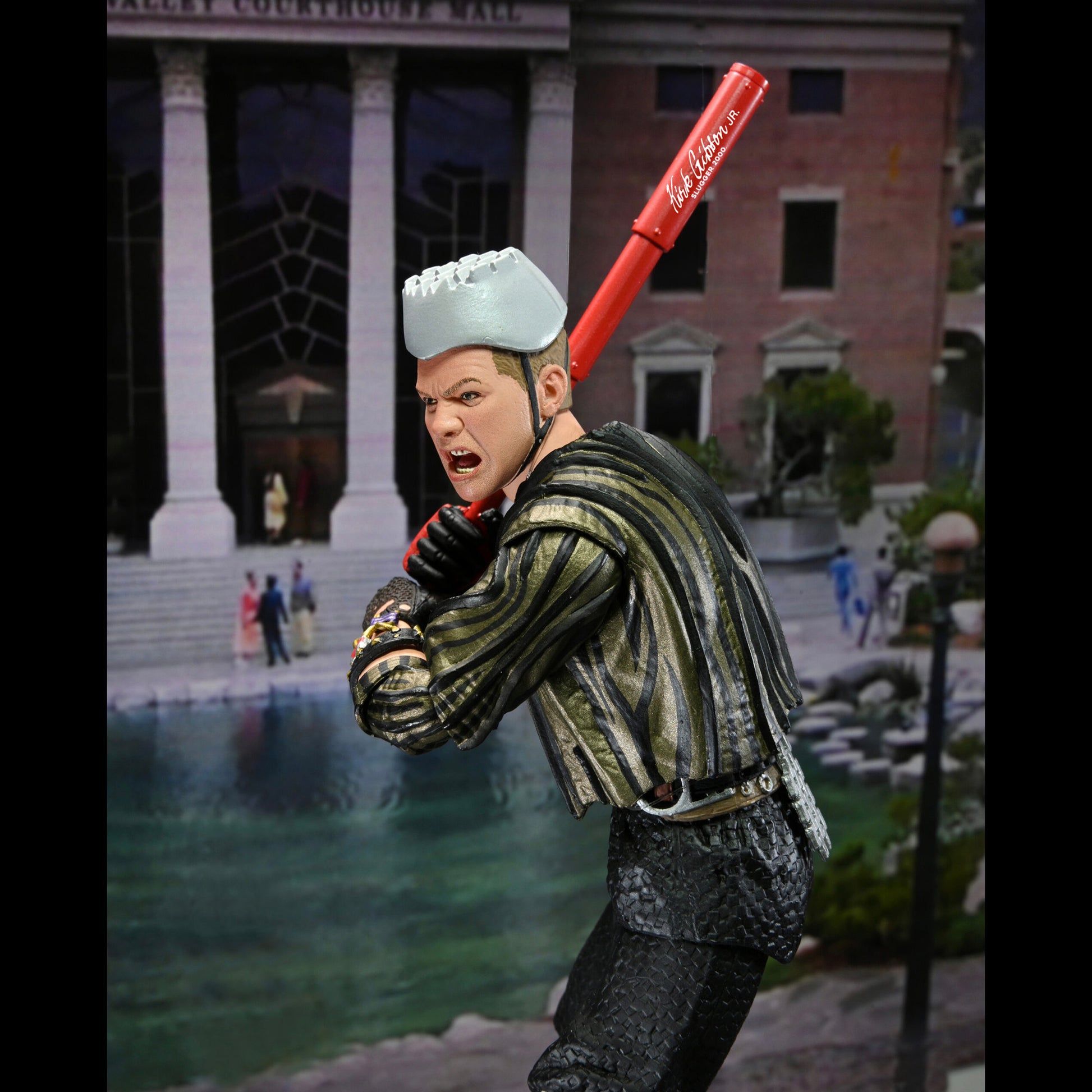 In Back to the Future Part 2, Marty and Doc experience the adventure of a lifetime in an unlikely time machine as they travel to the past, present, and future, setting off a time-shattering chain reaction that disrupts the space-time continuum! Standing approximately 7” tall, this Ultimate Griff Tannen figure is a menace! Includes telescoping bat, interchangeable head, hoverboard, and flight stand accessories.