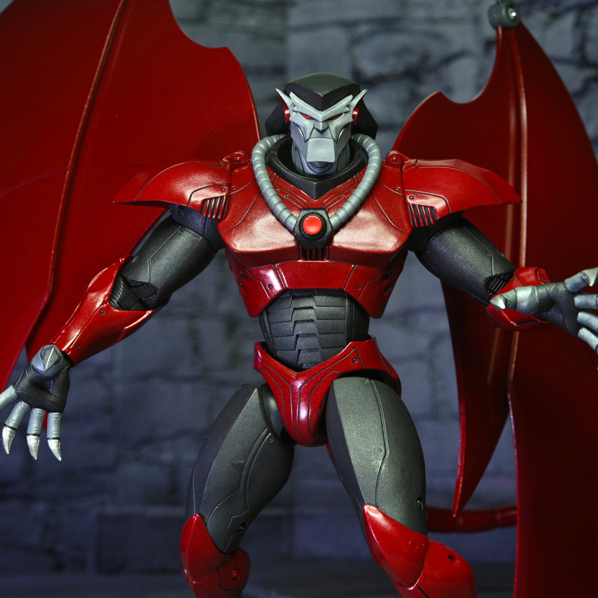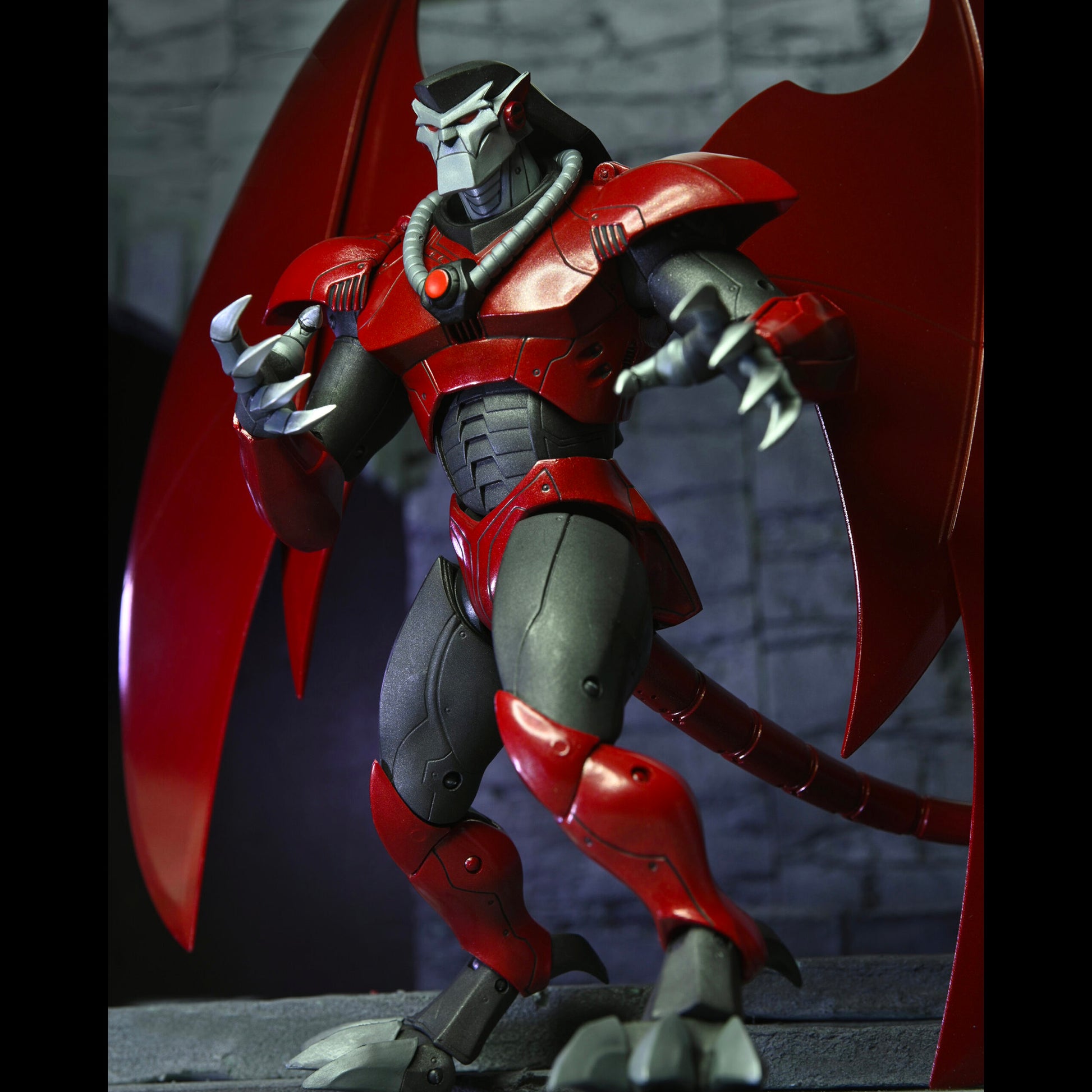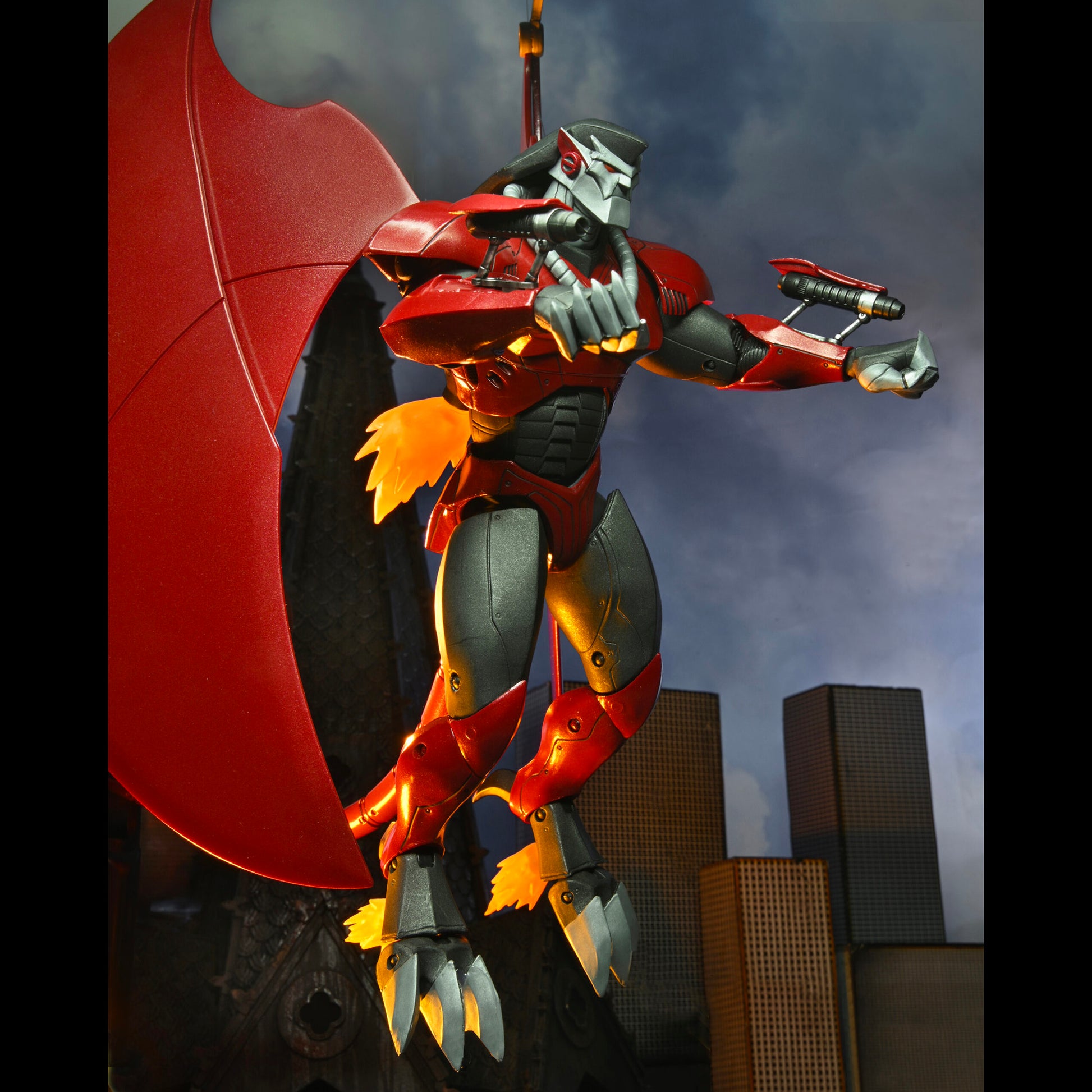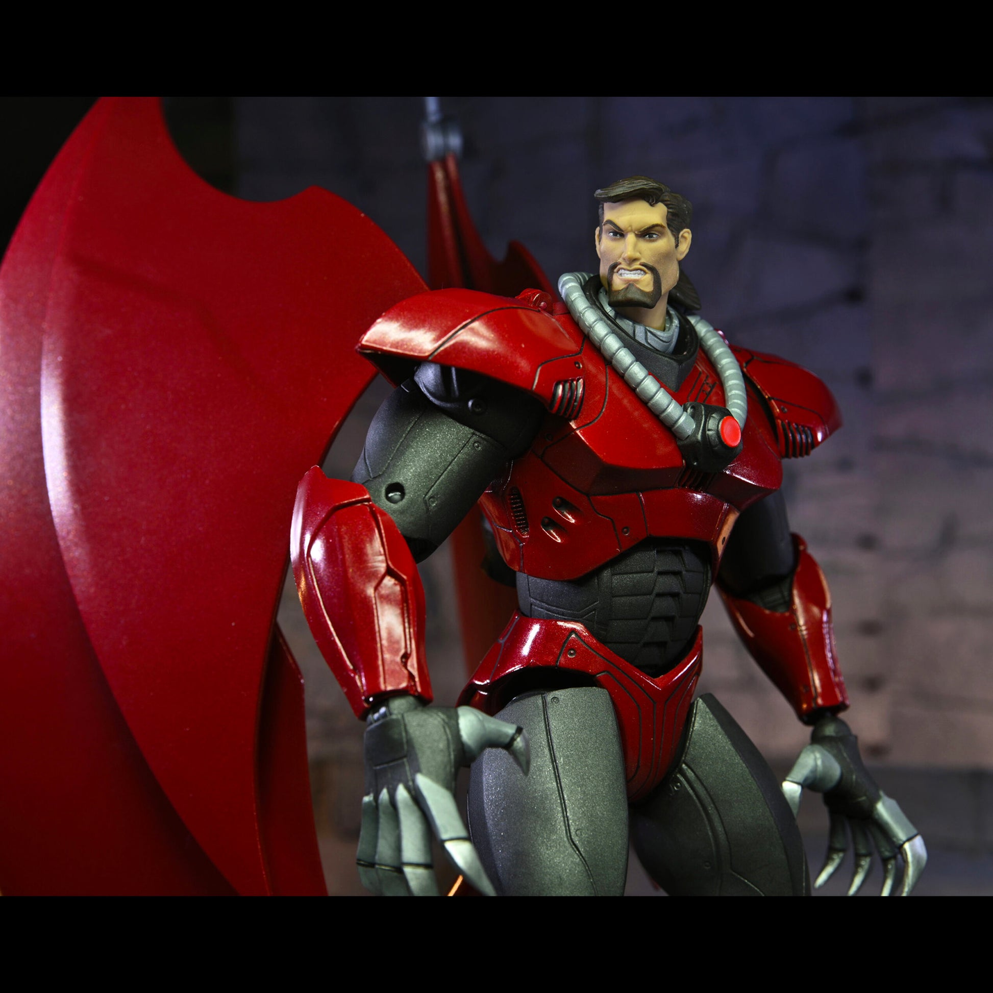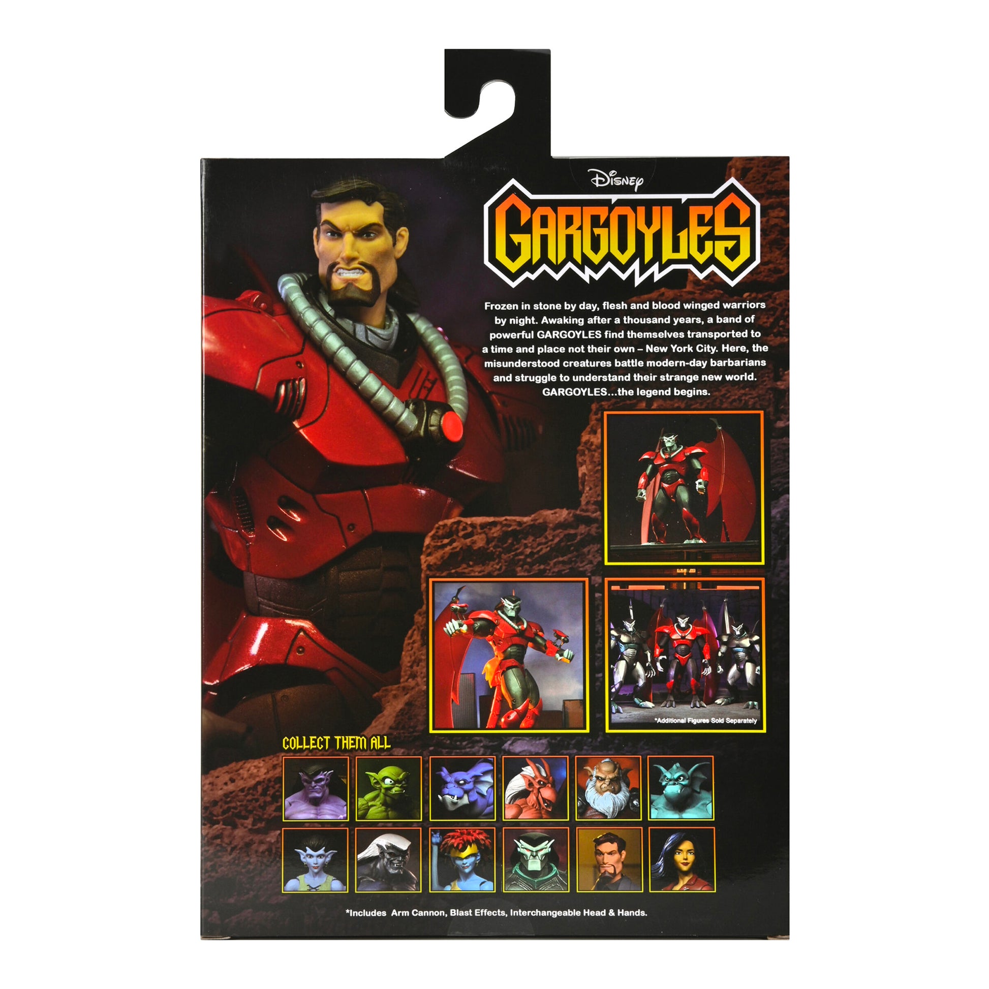 The time of the Gargoyles has come again! Arguably the best gothic cartoon of the 1990s, Gargoyles followed an ancient clan of gargoyles transported to modern-day Manhattan when their Scottish castle is relocated. That relocation is ordered by billionaire businessman David Xanatos, who has plans within plans for his new acquisition. This Ultimate Armored David Xanatos figure is fully articulated (including on wings), and comes with interchangeable head and hands, arm cannons, and blast effects. Comes in display-friendly window box packaging with an opening front flap.