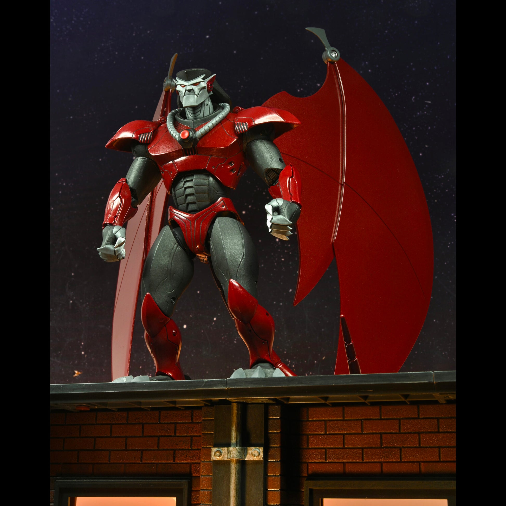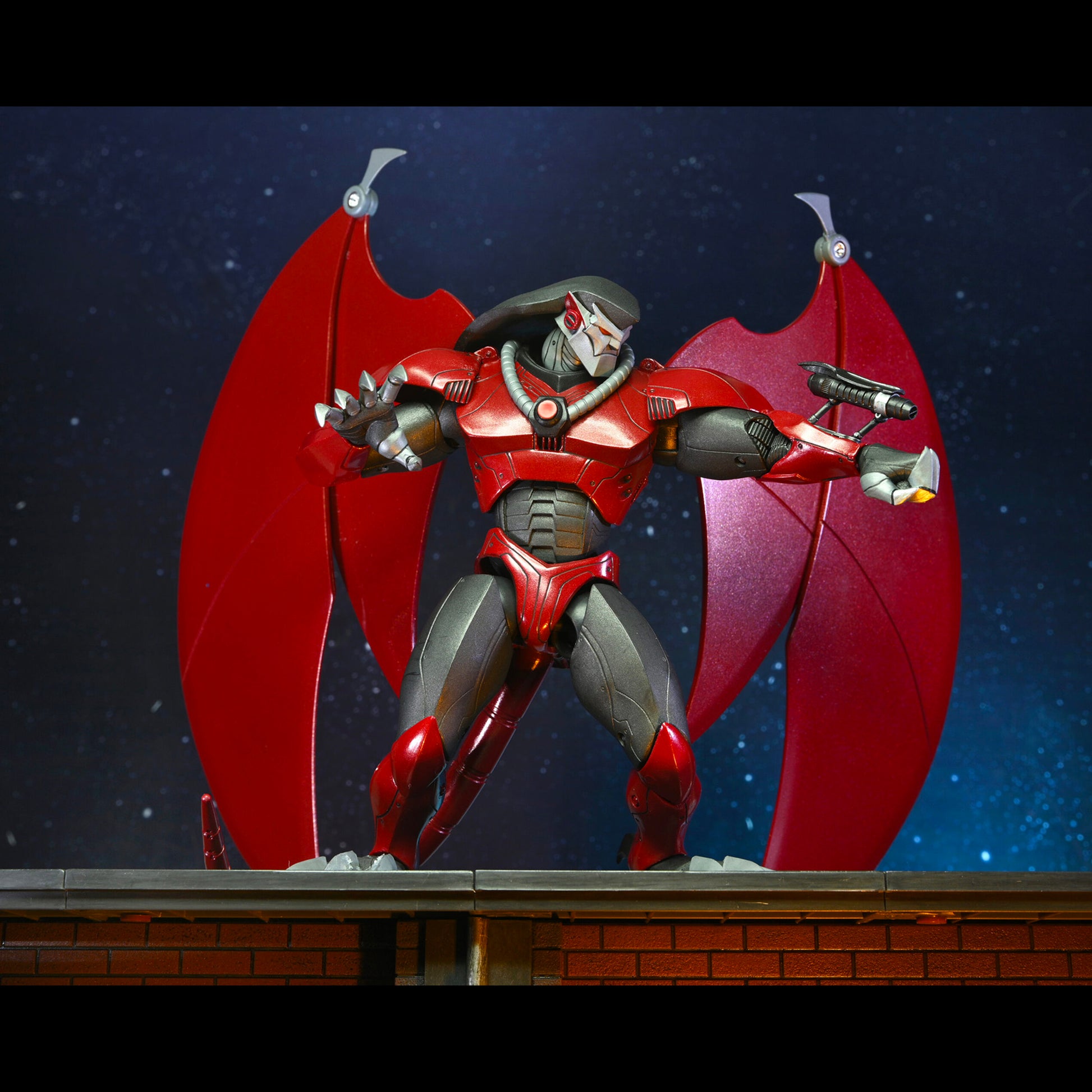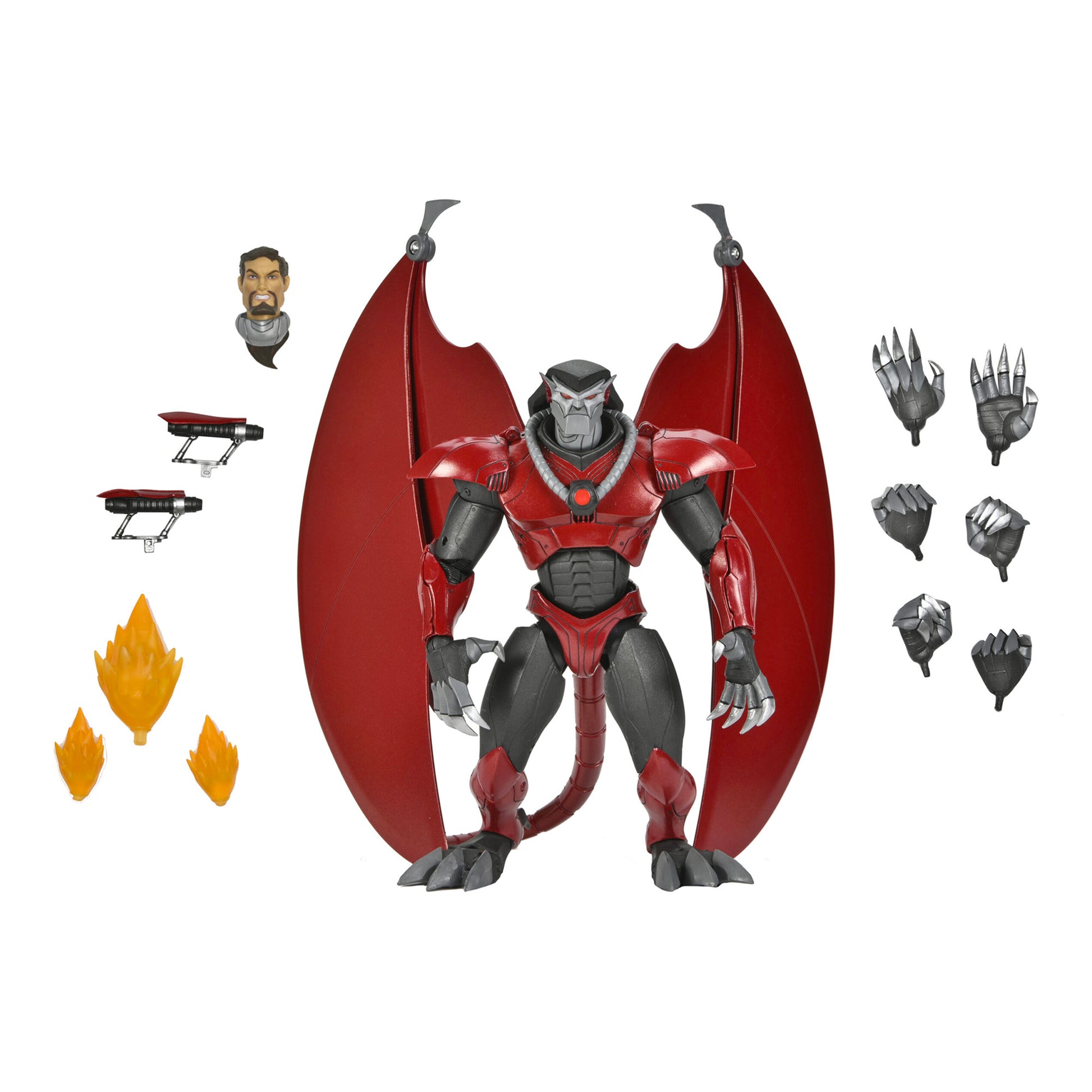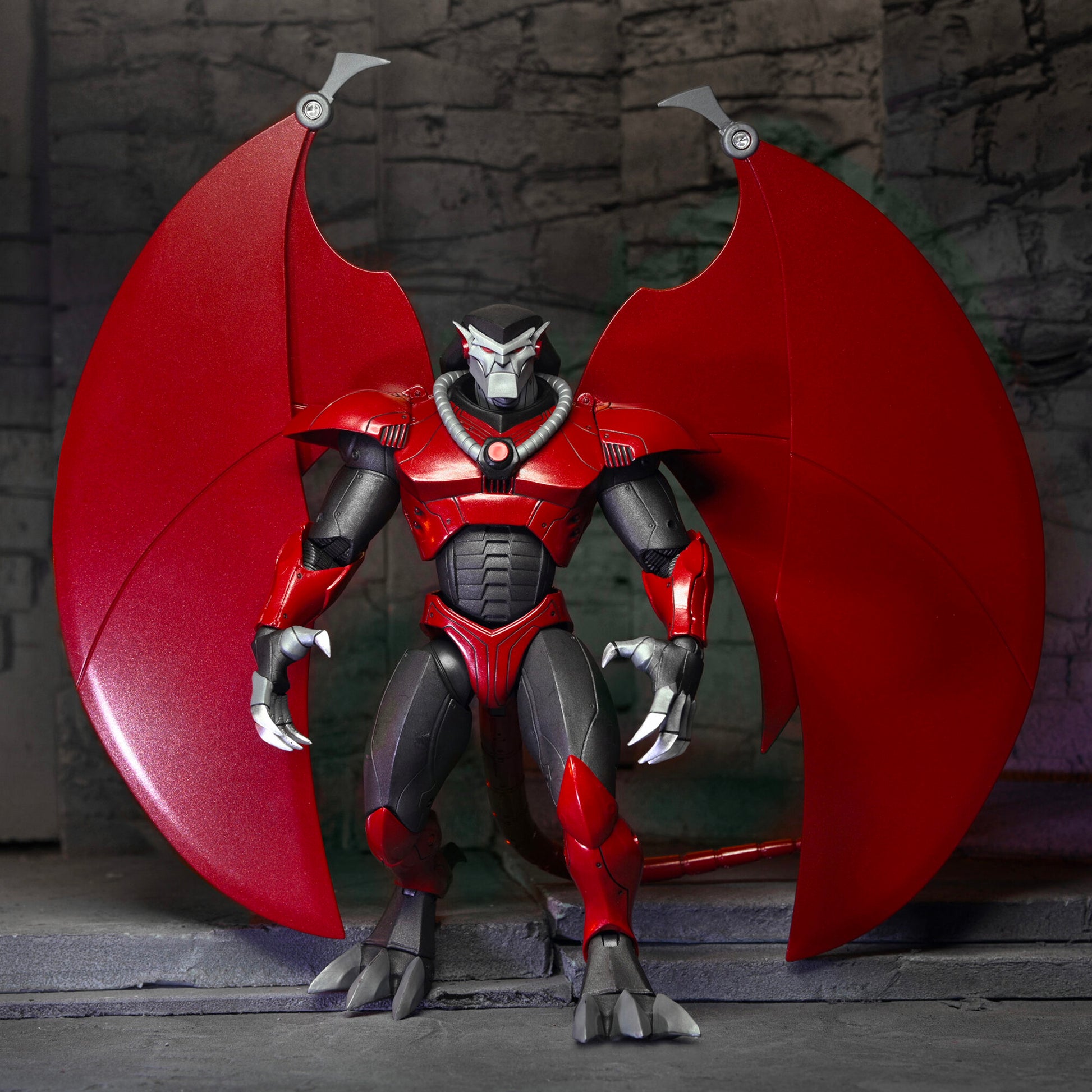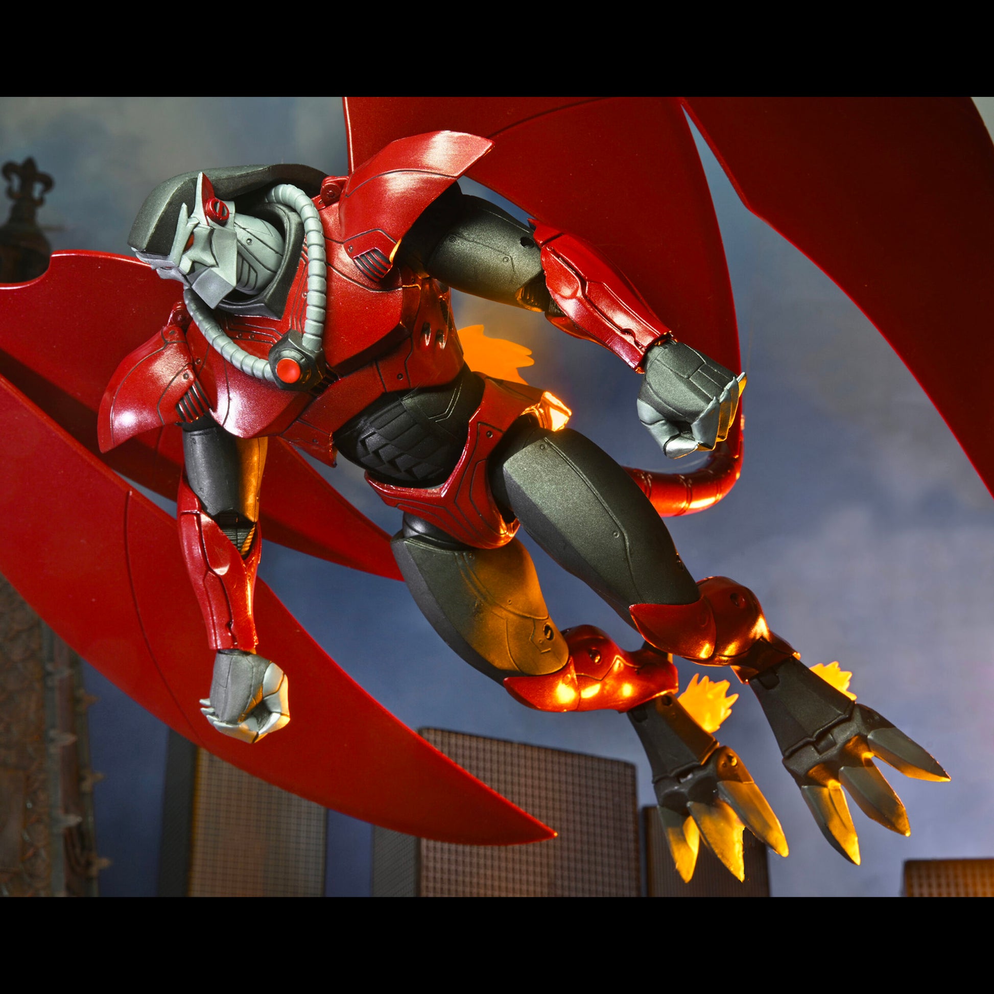 The time of the Gargoyles has come again! Arguably the best gothic cartoon of the 1990s, Gargoyles followed an ancient clan of gargoyles transported to modern-day Manhattan when their Scottish castle is relocated. That relocation is ordered by billionaire businessman David Xanatos, who has plans within plans for his new acquisition. This Ultimate Armored David Xanatos figure is fully articulated (including on wings), and comes with interchangeable head and hands, arm cannons, and blast effects. Comes in display-friendly window box packaging with an opening front flap.