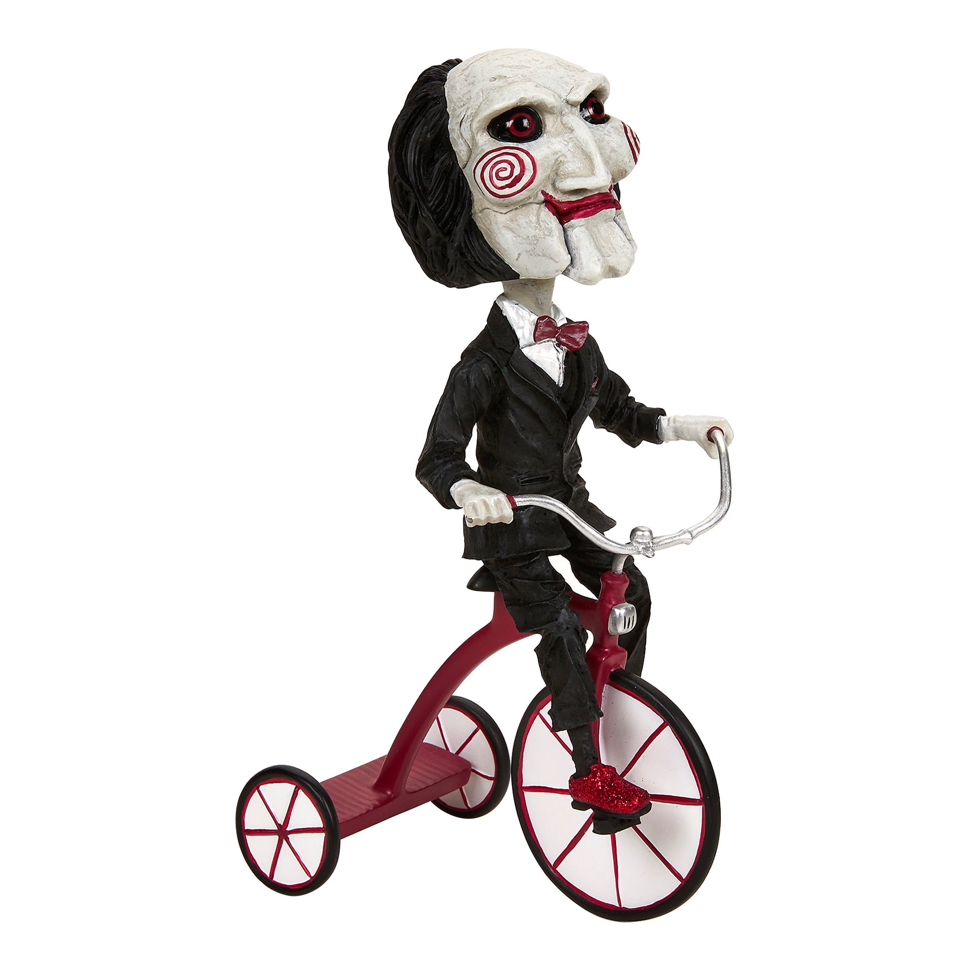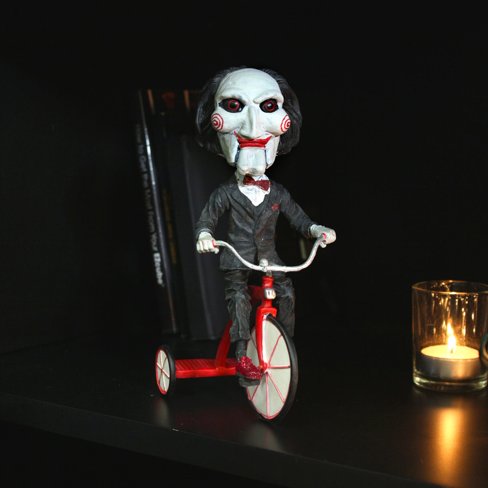 Billy is back! Returning to NECA’s popular Head Knockers line is the iconic puppet from Saw. The horror movie series uses this tricycling terror to great effect, but here his bobbling head makes him almost cute. Almost. Made of hand-painted resin, this Head Knocker is 8″ tall and comes in collectible matte-finish packaging with spot gloss.