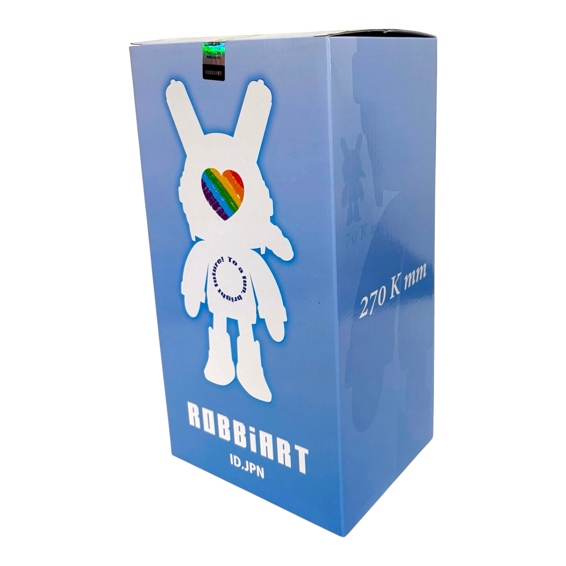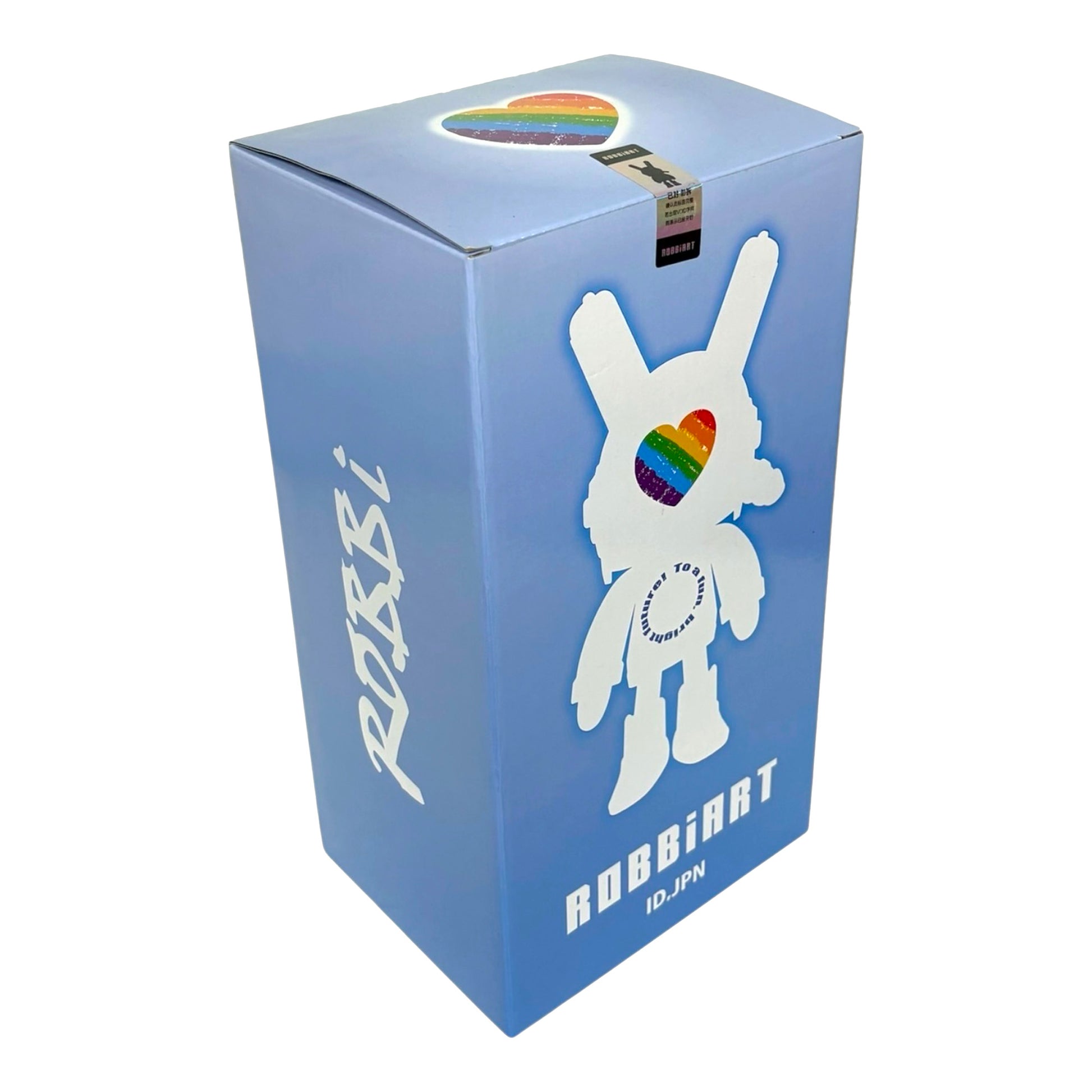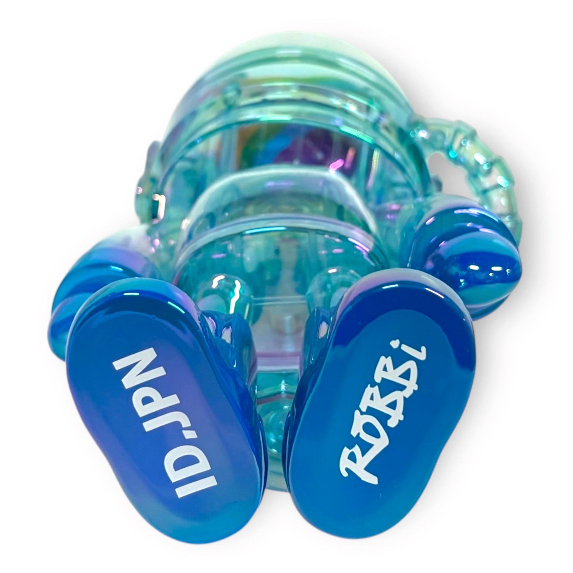 The inside of the helmet is inspired by a rainbow, symbolizing hope, good fortune, and diversity. The slogan “To a fun, bright future” on the chest shows ROBBi’s positive vision for the future.
