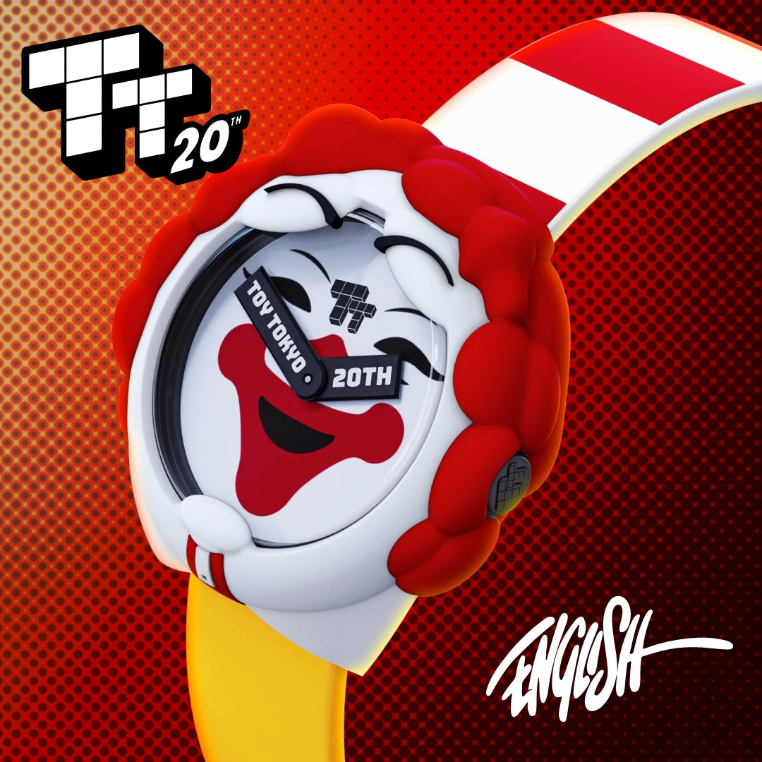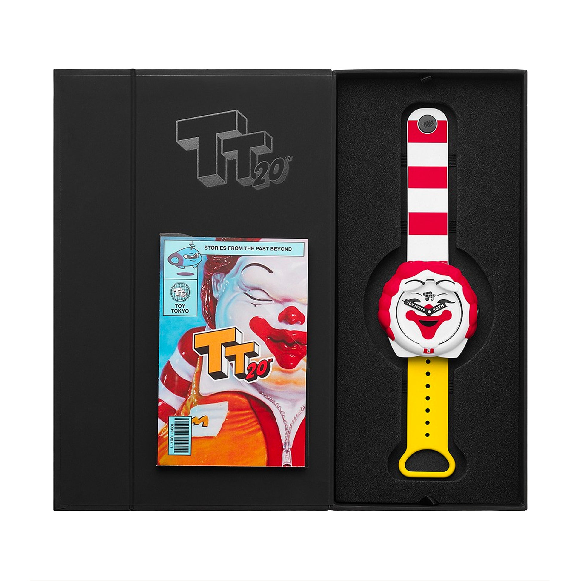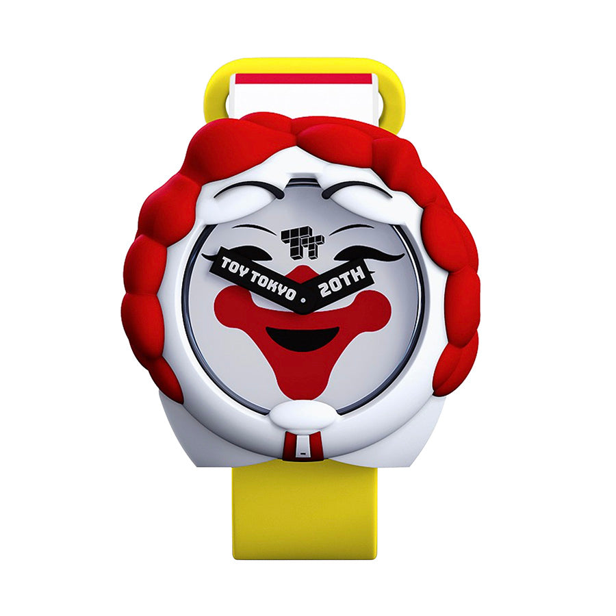 World-renowned artist Ron English is known for his focus on the American culture of consumption and other advertising themes in his art, and this limited-edition watch takes aim at one of the biggest (pun intended) targets: Ronald McDonald. The “MC Supersized” watch reflects English’s signature style, which will be familiar to Kidrobot fans after a number of crossover projects, like the Apocalypse Grin Dunnys, The Simpsons Grin Figures, Uncle Scam Art Figures and many more.