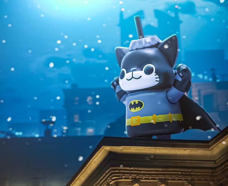 Soda Kats series, a naughty and cute character. Designed by Kenneth Tang. collaboration with Mindstyle PopLife and Funko USA Paka Paka line have been turned into superheroes of the feline world! Officially licensed DC comics the lovable Soda Kats have expanded and now you get to see them as DC heroes and Villains!