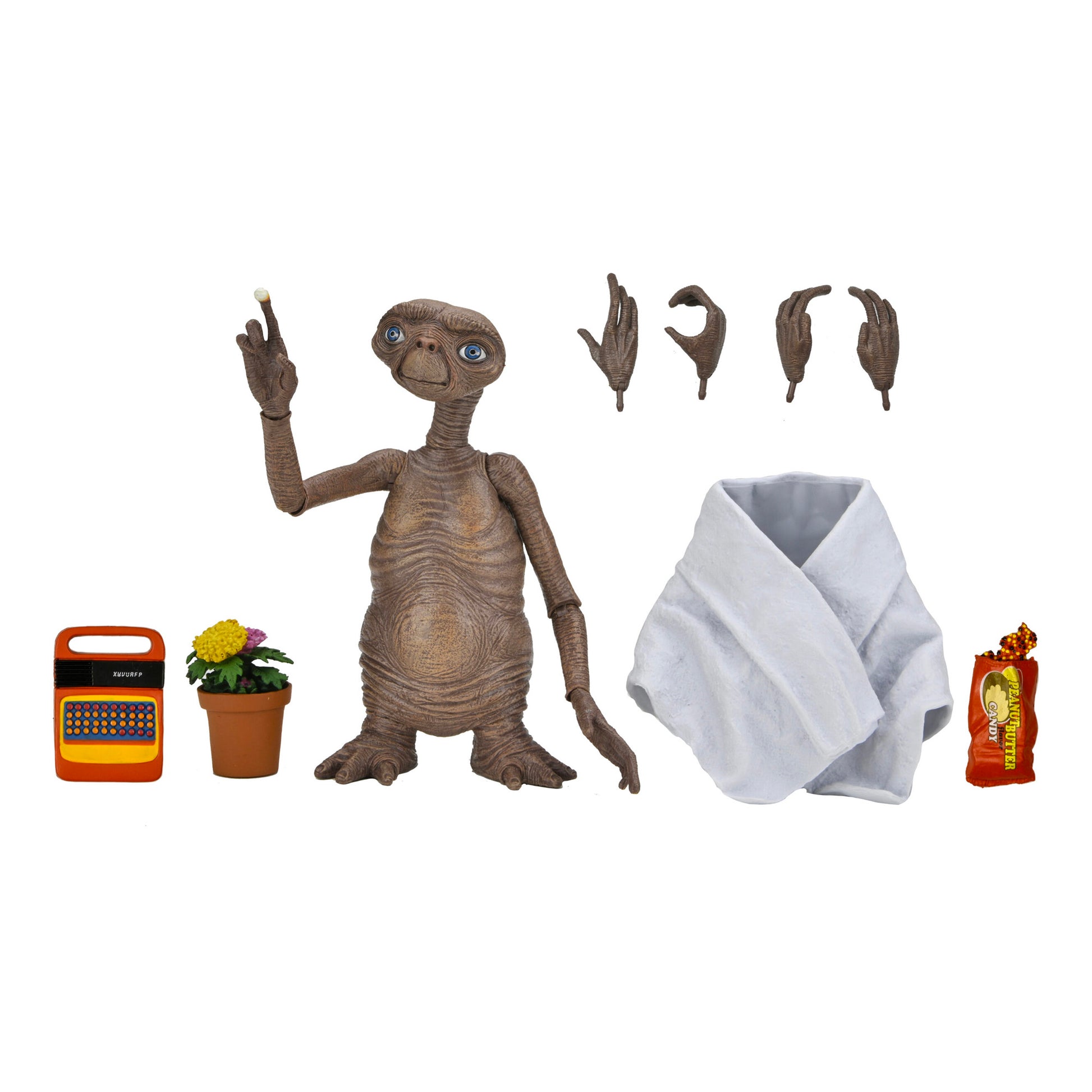 This Ultimate action figure celebrates the 40th anniversary of the beloved classic! Bring the magic and excitement of E.T. The Extra-Terrestrial into your world. As your friendship with E.T. grows, relive all of his earthly encounters or look to the stars and create your own unforgettable interactive adventures. Ultimate E.T. stands in 7″ scale (meaning the figure is about 4.5″ tall) and is posable. Includes candy bag, blanket accessory, Speak & Spell, and potted plant, plus interchangeable necks and hands. Comes in a display-friendly 40th-anniversary window box packaging with an opening front flap.